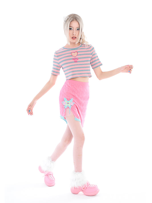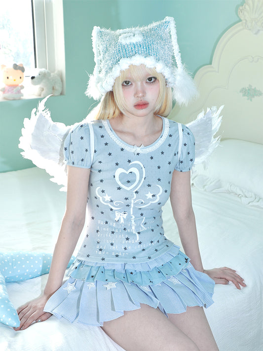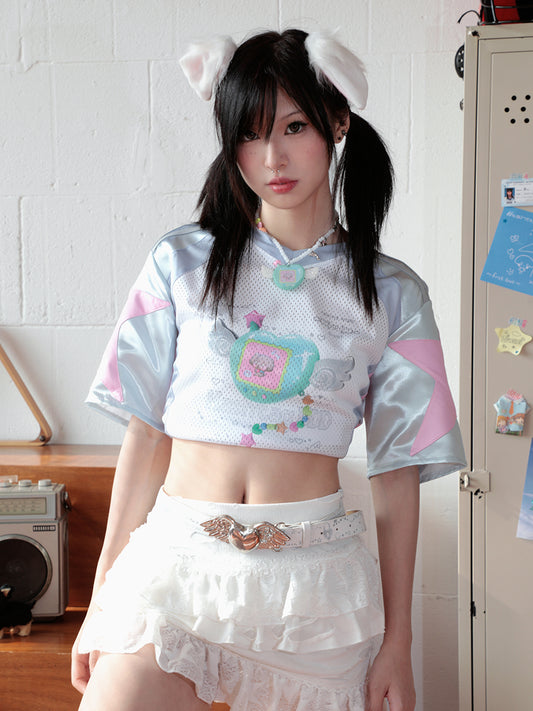 Magic Key Print Lace Trim Short Sleeve T-Shirt