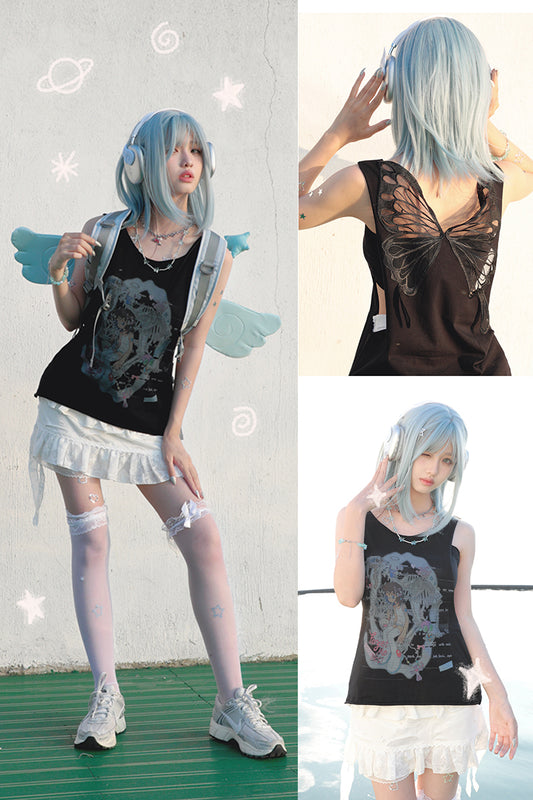 oliwabiu co-branded Butterfly Backless Fossil Sleeveless Top