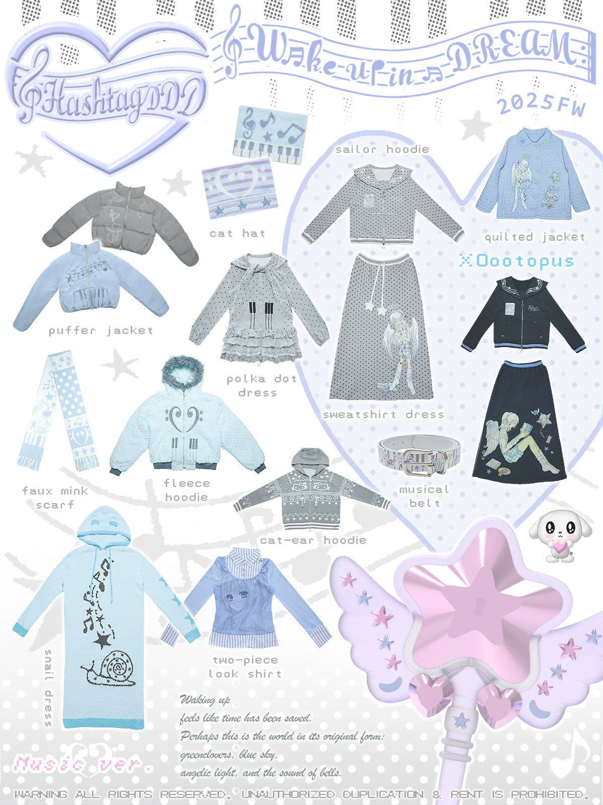 Silver-Foil Star & Piano Note Plush Hooded Coat