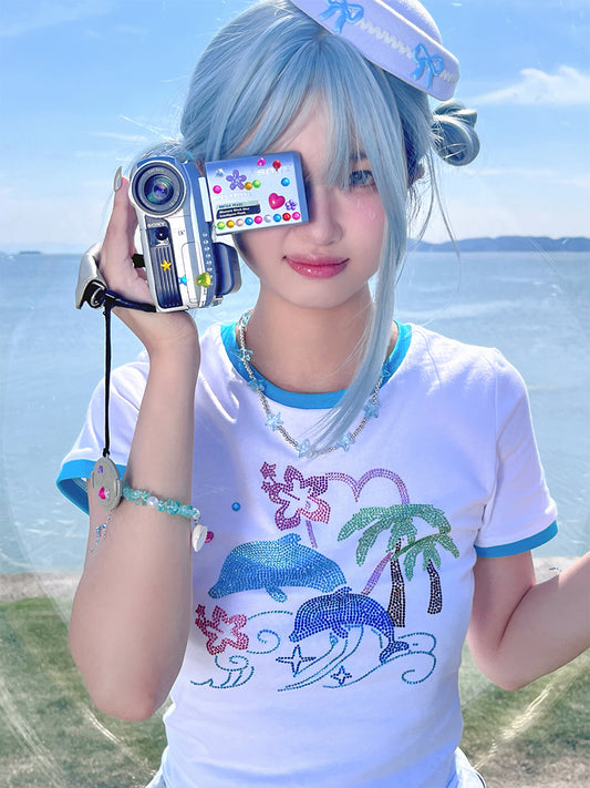 Band-Aid Bow Rhinestone Short Sleeve T-Shirt