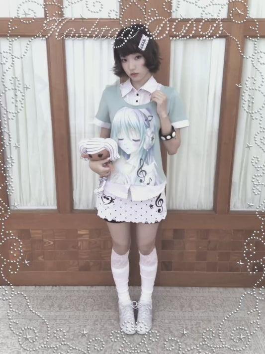 Comic Girl Mock Layer Polka Dot Short Sleeve Blouse Top