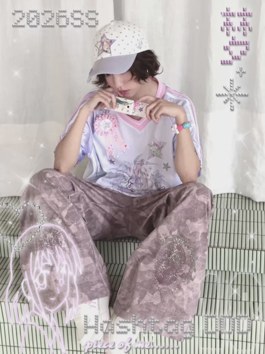 Cartoon Eye Rhinestone Parachute Pink Pants