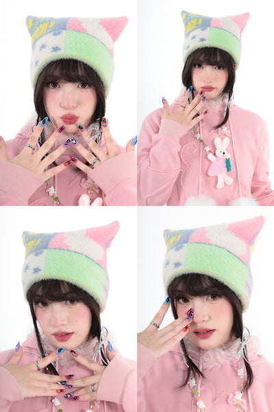Cat ear knitted double-sided cold hat
