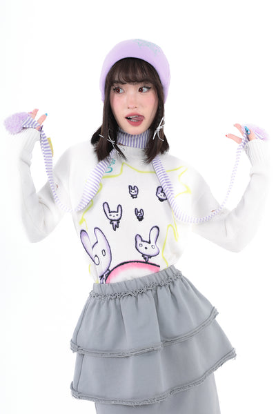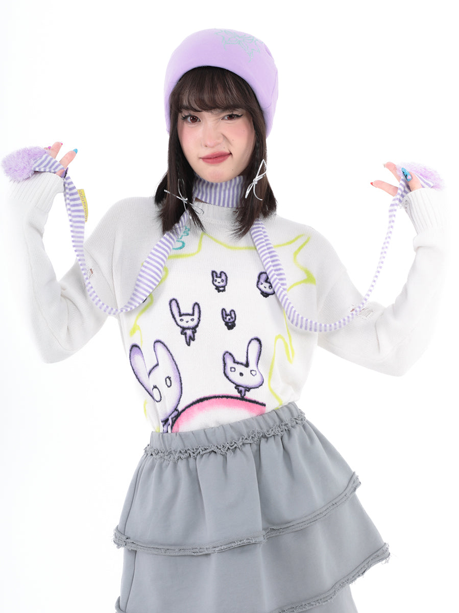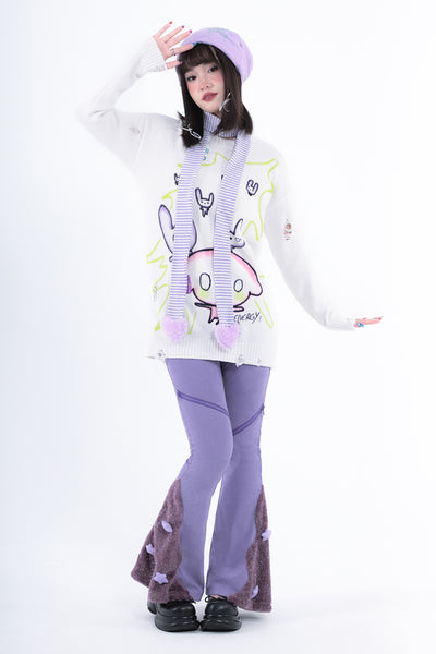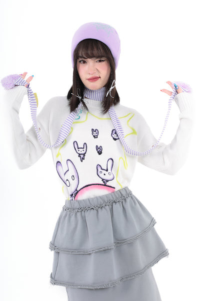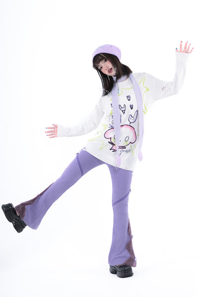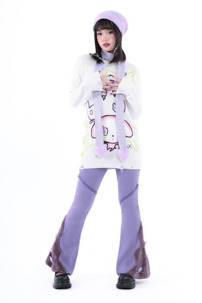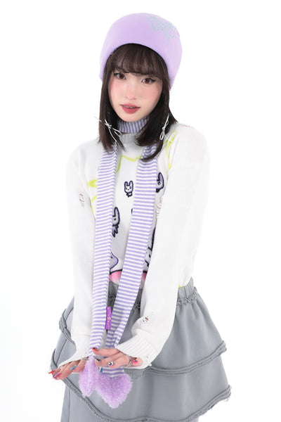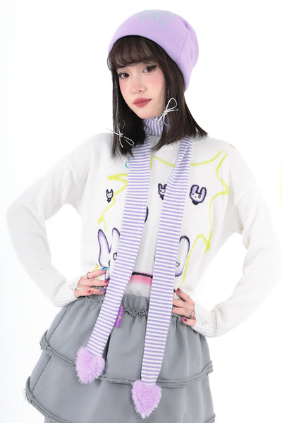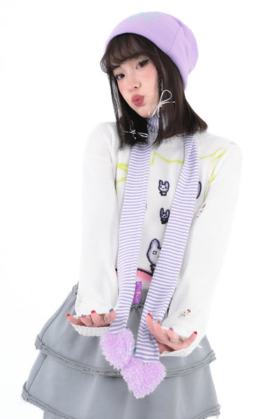 Love shape filled cotton white purple striped fine scarf