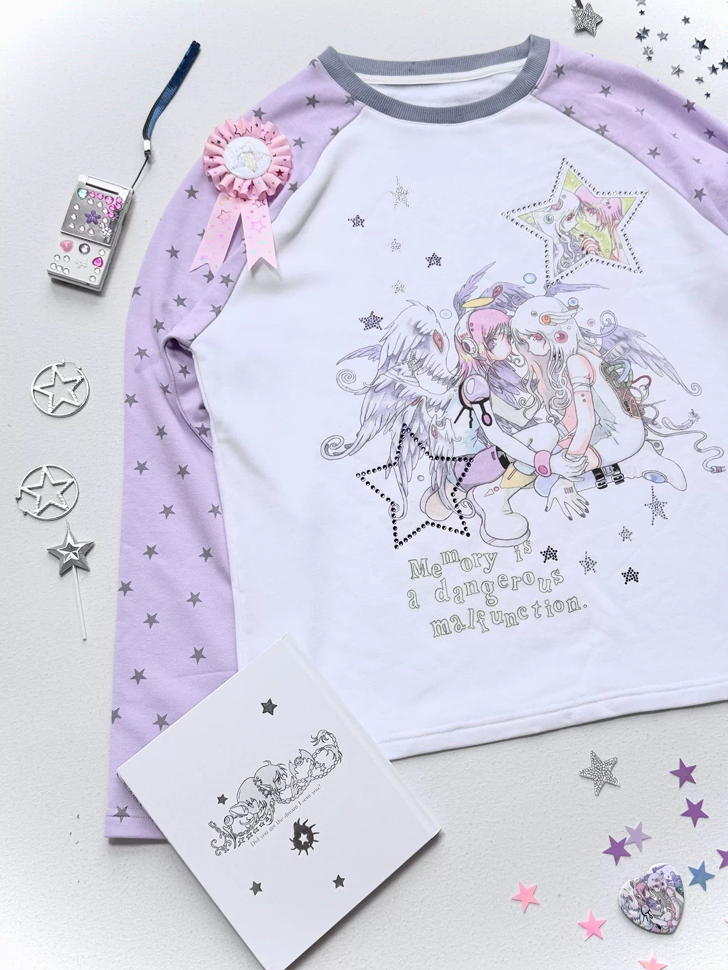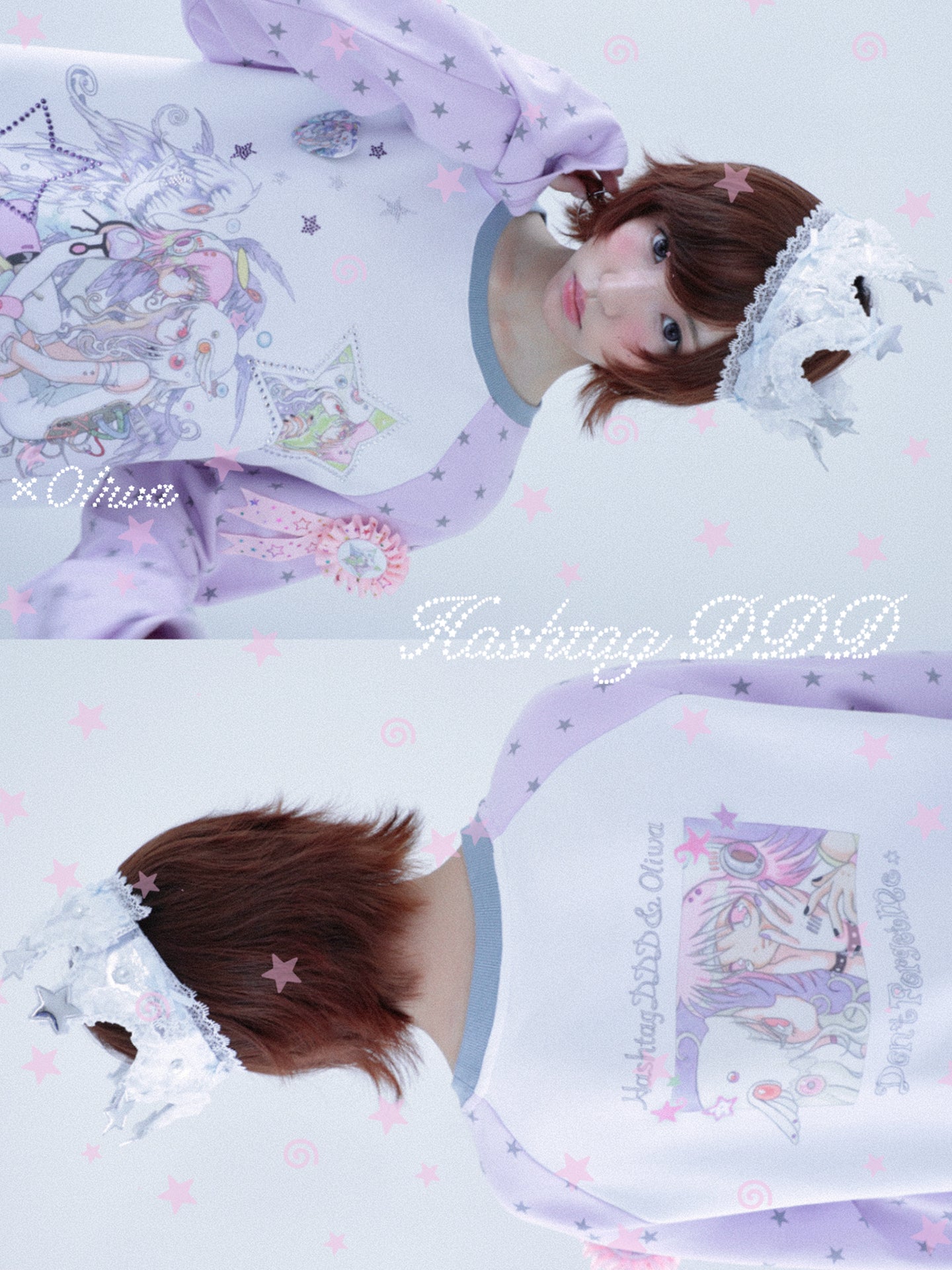 oliwabiu co-branded rhinestone star shoulder long sleeved hoodie