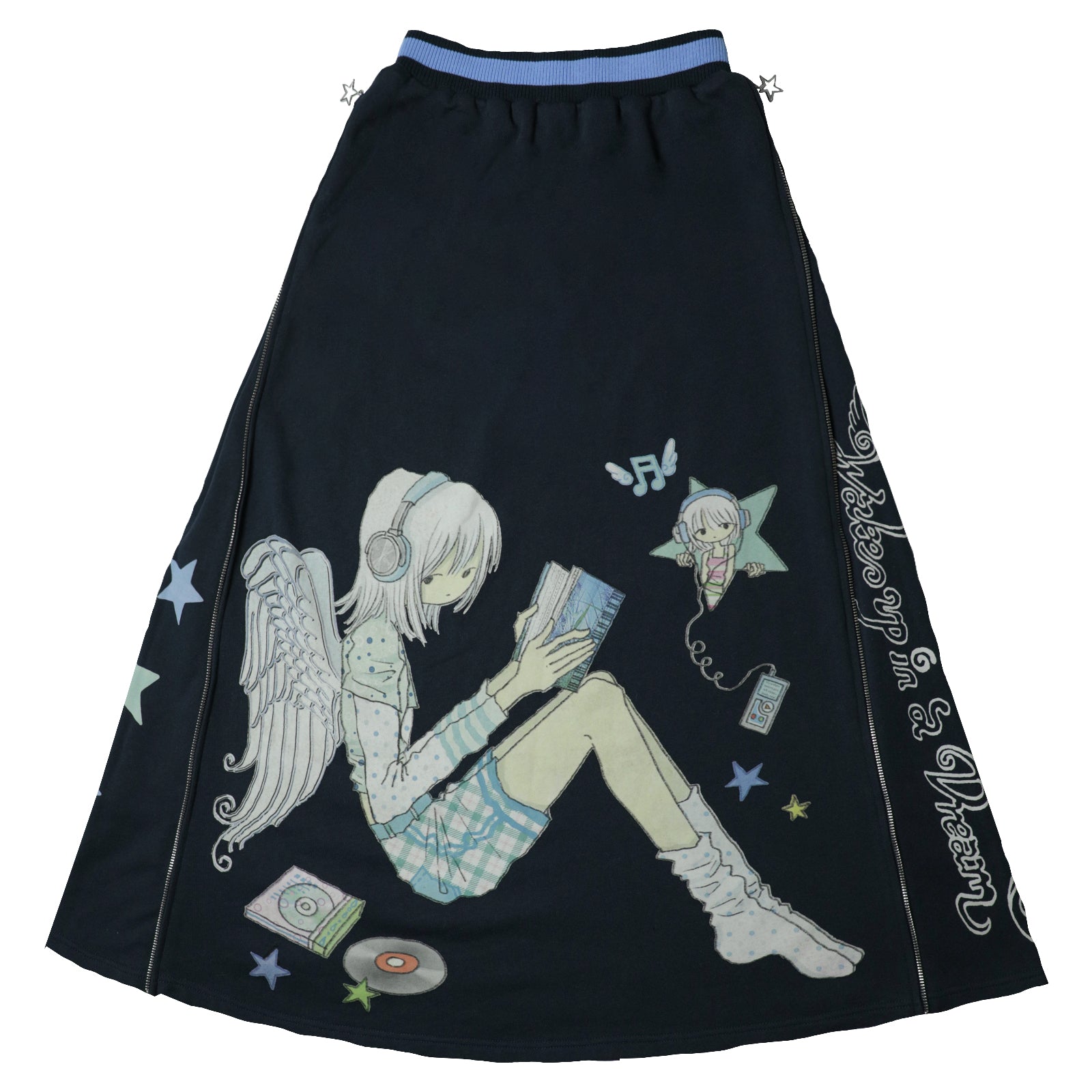 oooctopus co-branded Side-Zip Sweatshirt Long Skirt-navy