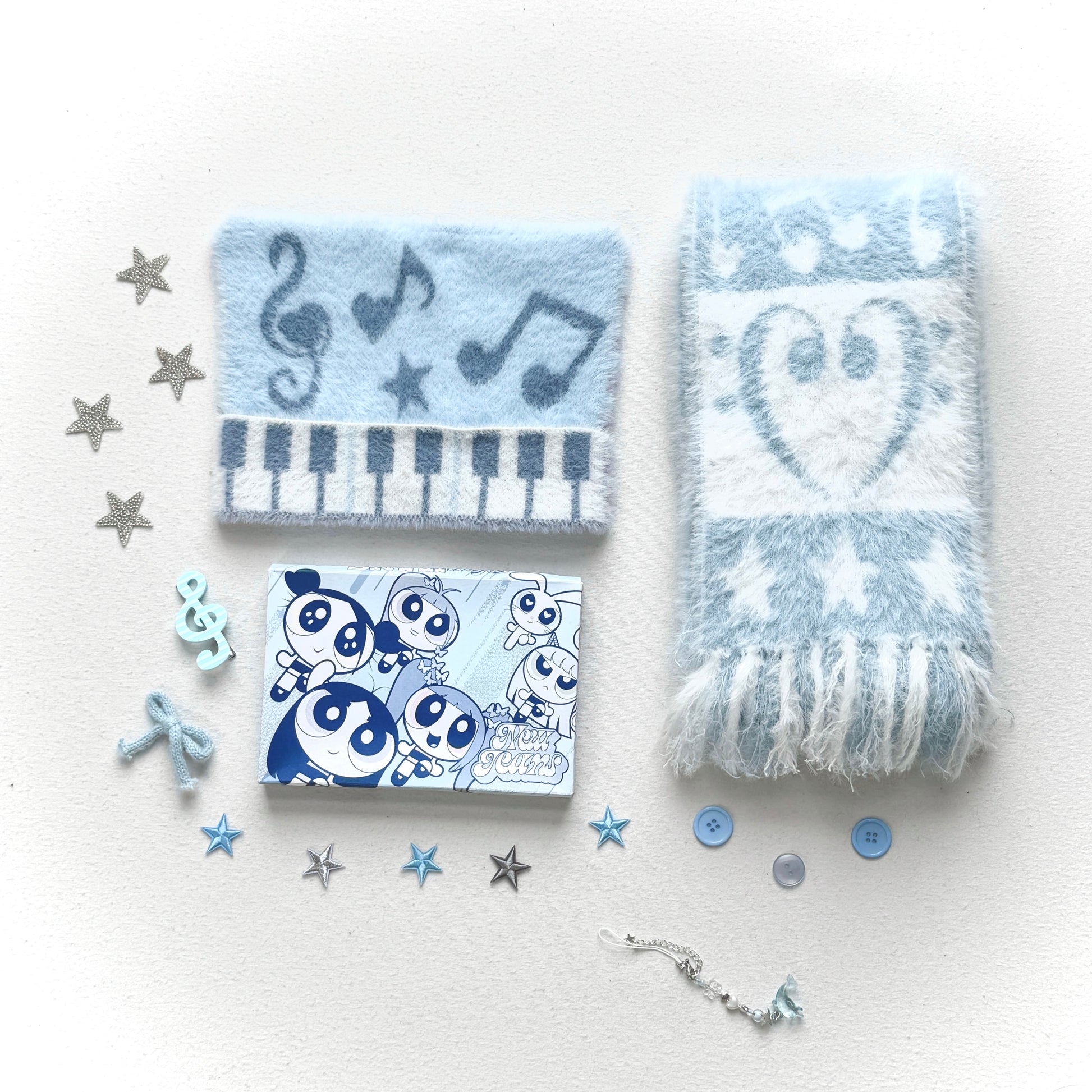 Reversible Music Note & Star Stripe Knit Hat with Cat Ears